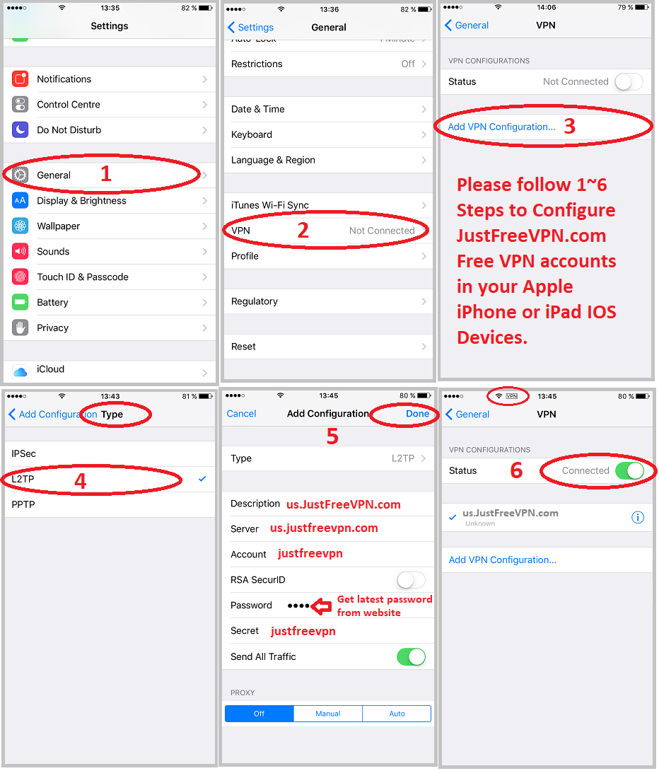 We offer premium quality Free VPN services for Desktop PCs & Smartphones including Windows XP/7/8/10, MAC OSX, Ubuntu, Apple iPhone/iPad iOS & Samsung/Huawei Android Mobiles/Tablets. Through AES-CBC 256bits encrypted L2TP VPN, SSL Certificate based SSTP VPN and OpenVPN Protocols, we provide the highest level of FREE VPN services with excellent QoS. ( Note: L2TP VPN Secret Key is: justfreevpn ) More...